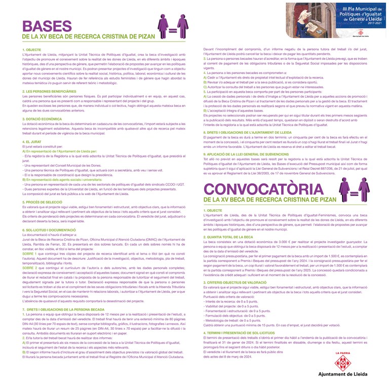 El Ayuntamiento de Lleida crea la beca de investigación con el objetivo de promover el conocimiento sobre la realidad de las mujeres de Lleida.