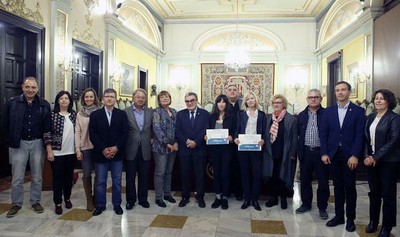 El alcalde, acompañado de la teniente de alcalde y concejala de las Políticas para la Igualdad, Sara Mestres, ha entregado los premios con la decana del colegio, Neus Bonet, y con el presidente de la entidad en Lleida, Rafa Gimena.